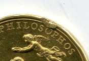 OR 27,79 grammes - 34 mm - bel exemplaire avec les flans miroir mais trois chocs sur la tranche, traces de touchau anciennes pour valider le métal. (photo).