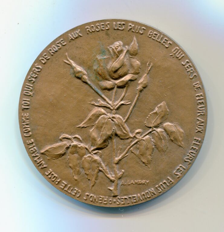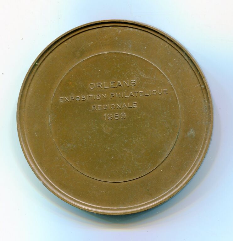 ORLEANS EXPOSITION PHILATELIQUE REGIONALE 1968 - Médaille de table 63 mm ; en légende circulaire : "Prends cette rose aimable comme toi qui sers de rose aux roses les plus belles, qui sers de fleur aux fleurs les plus nouvelles " (Pierre de Ronsard) ; en centre tige de rose, œuvre signée LANDRY - revers : texte d'attribution -