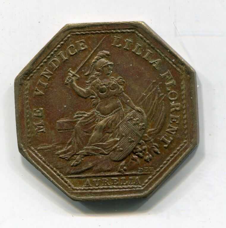 À l'avers ME VINDICE LILLA FLORENT, AURELIA à l'exergue - en centre La Pucelle assise de face, main droite tenant épée, main gauche sur le blason d'Orléans.