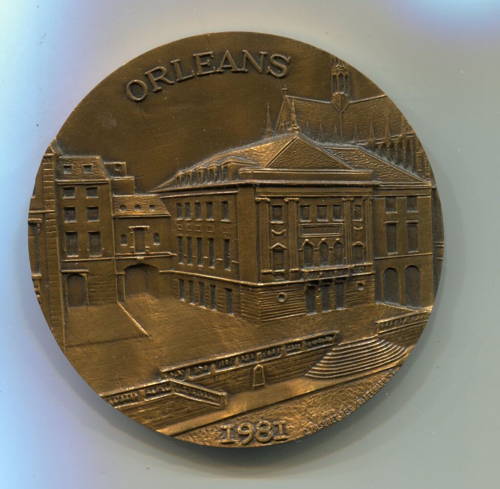 ORLEANS - Médaille de table offerte par la ville en 1981 - Vue panoramique de la NOUVELLE MAIRIE, frappe haut relief signée C. Pasquet Des / R. Bernard SC,
