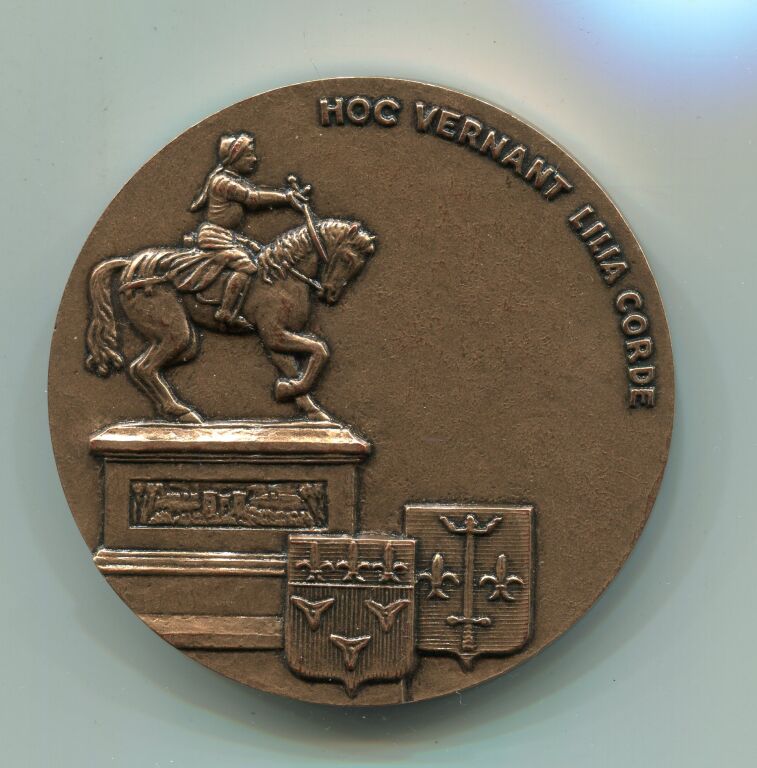 Revers : Hoc Vernant Lilia Corde, statue de Jeanne d'Arc avec armoiries de Jeanne d'Arc et ville d'orléans - 192,8 grammes - SUP, en son coffret d'origine.