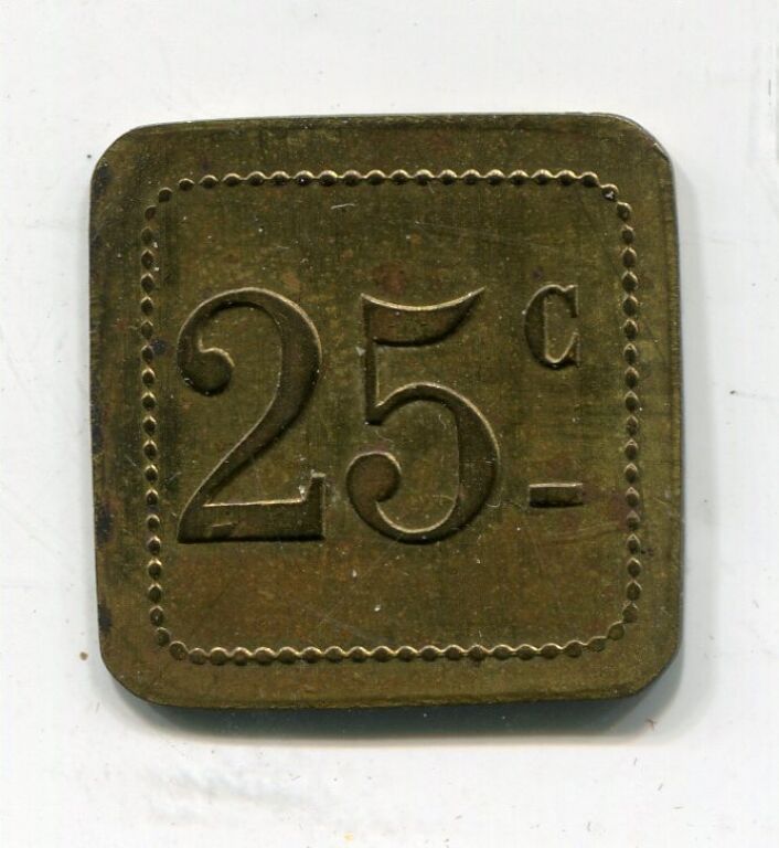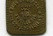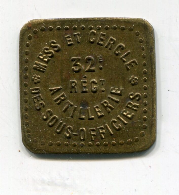 ORLEANS - MONNAIES de NECESSITE - 1914 / 1918 - ARTILLERIE, 32e REGIMENT, Mess et Cercle des Sous-Officiers - 25 centimes laiton 21 mm - Carré Elie 10.2 SUP