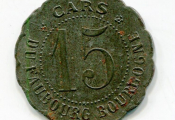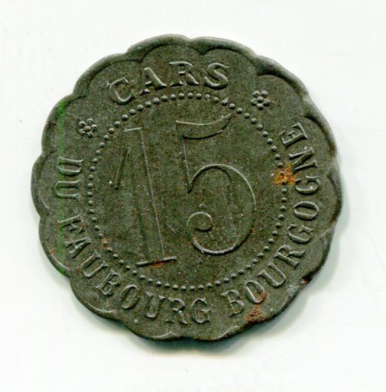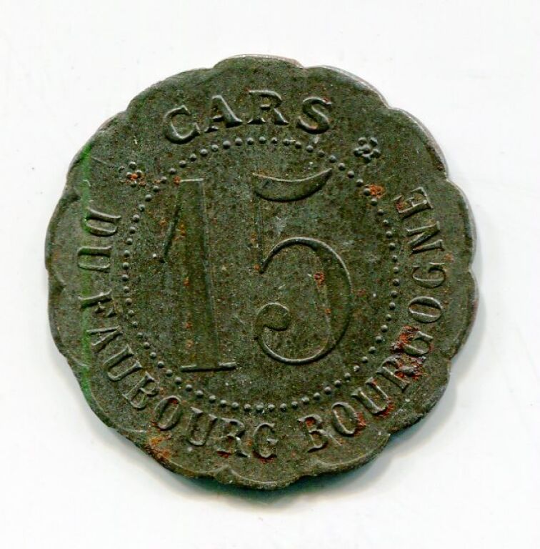 ORLEANS - MONNAIES de NECESSITE - 1914 / 1918 - " CARS FAUBOURG BOURGOGNE " - 15 centimes en zinc, rond festonné 21,5 mm.