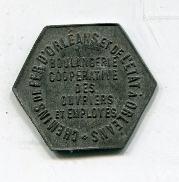ORLEANS - MONNAIES de NECESSITE - 1914 / 1918 - CHEMINS de FER D'ORLEANS et de L'ETAT - BOULANGERIE COOPERATIVE des OUVRIERS et EMPLOYES.