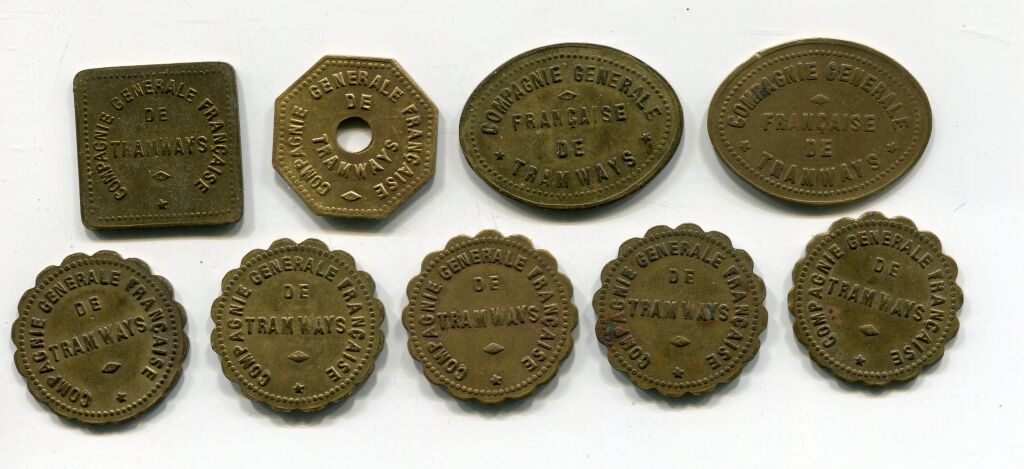 ORLEANS - MONNAIES de NECESSITE - 1914 / 1918 - COMPAGNIE GENERALE FRANCAISE de TRAMWAYS - LOT de 9 monnaies ( Elie 180 euros ) :