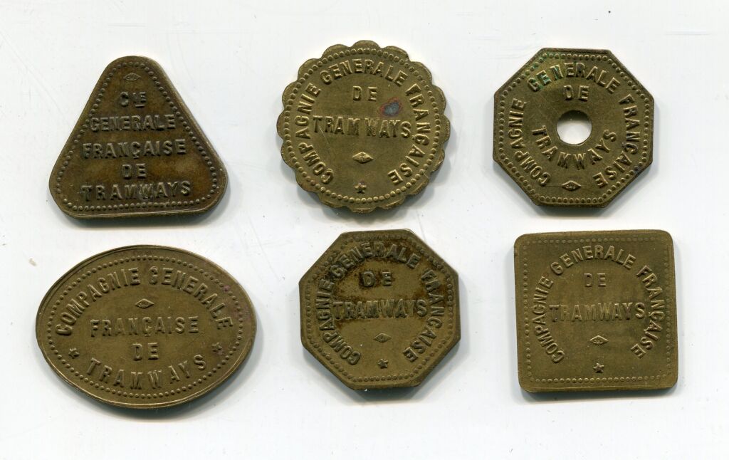 ORLEANS - MONNAIES de NECESSITE - 1914 / 1918 - COMPAGNIE GENERALE FRANCAISE de TRAMWAYS - Rare collection complète des six monnaies émises - SUP