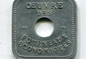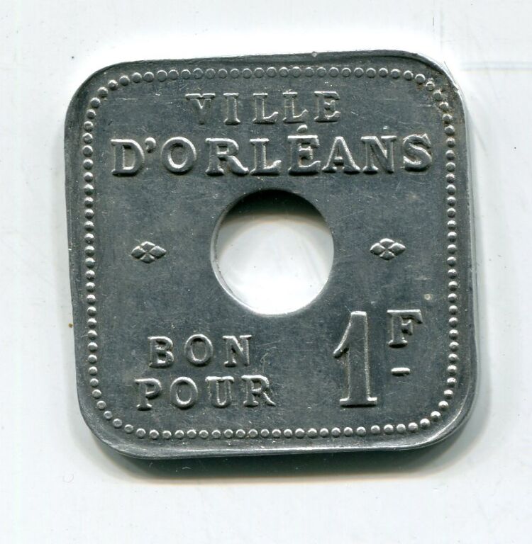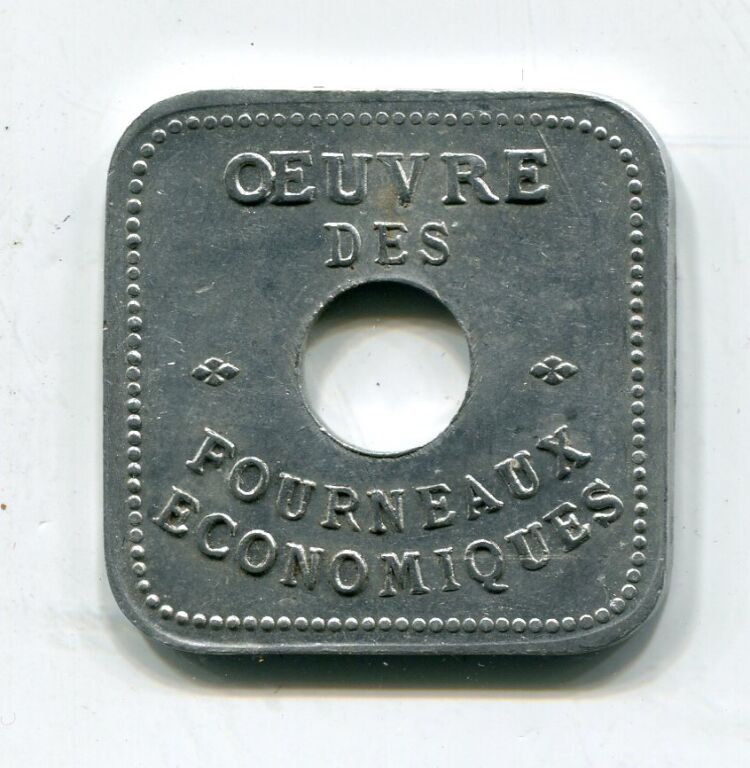 ORLEANS - MONNAIES de NECESSITE - 1914 / 1918 - OEUVRE des FOURNEAUX ECONOMIQUES - " Bon pour un franc " - carré, aluminium 27 mm -