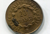 Laiton fouré à la taille de la monnaie de 20 francs OR - "Liberté-Egalite-Fraternité 20 francs " - Revers : Mme ALICE tel 33-69 English spoken " - 22 mm - L/A n° 1782. - SUP