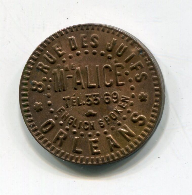 ORLEANS - RARE JETON de MAISON CLOSE ( * ) : MADAME ALICE, 8 rue des JUIFS.