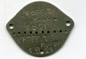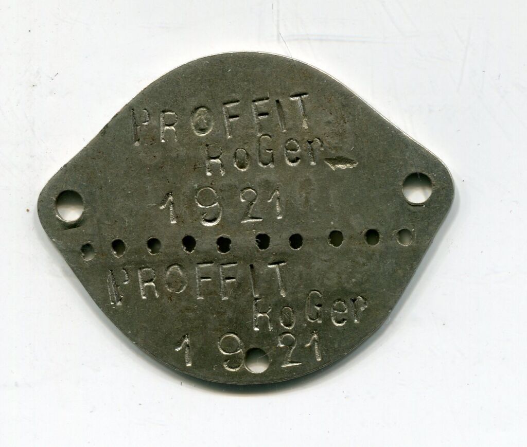 PLAQUE D'IDENTITE MILITAIRE ( * ) au modèle de 1881 - losangique en tôle 35 x 25 mm Au nom de PROFFIT Roger classe 1921 - ORLEANS matricule 1329 - TTB - L/A n° 2160