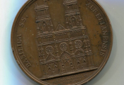 ( * ) selon l"Abbé Georges Chenesseau dans son ouvrage "Sainte Croix, histoire d'une cathédrale gothique réédifiée par les Bourbons 1599-1829 " le frappe de cette médaille date de 1767 - Elle représente le projet de l'architecte Trouard pour la façade, projet qui d'ailleurs fut adopté.