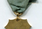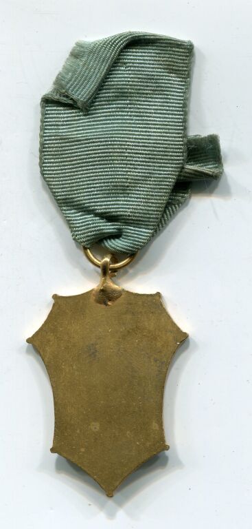 Insigne métal doré, inscriptions émail grand feu bleu - Décor d'un casque Adrian au-dessus de deux mains qui se serrent.- avec bélière et ruban soie bleue - 40 x 30 mm - TTB
