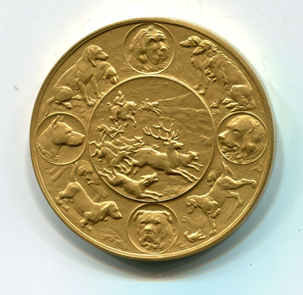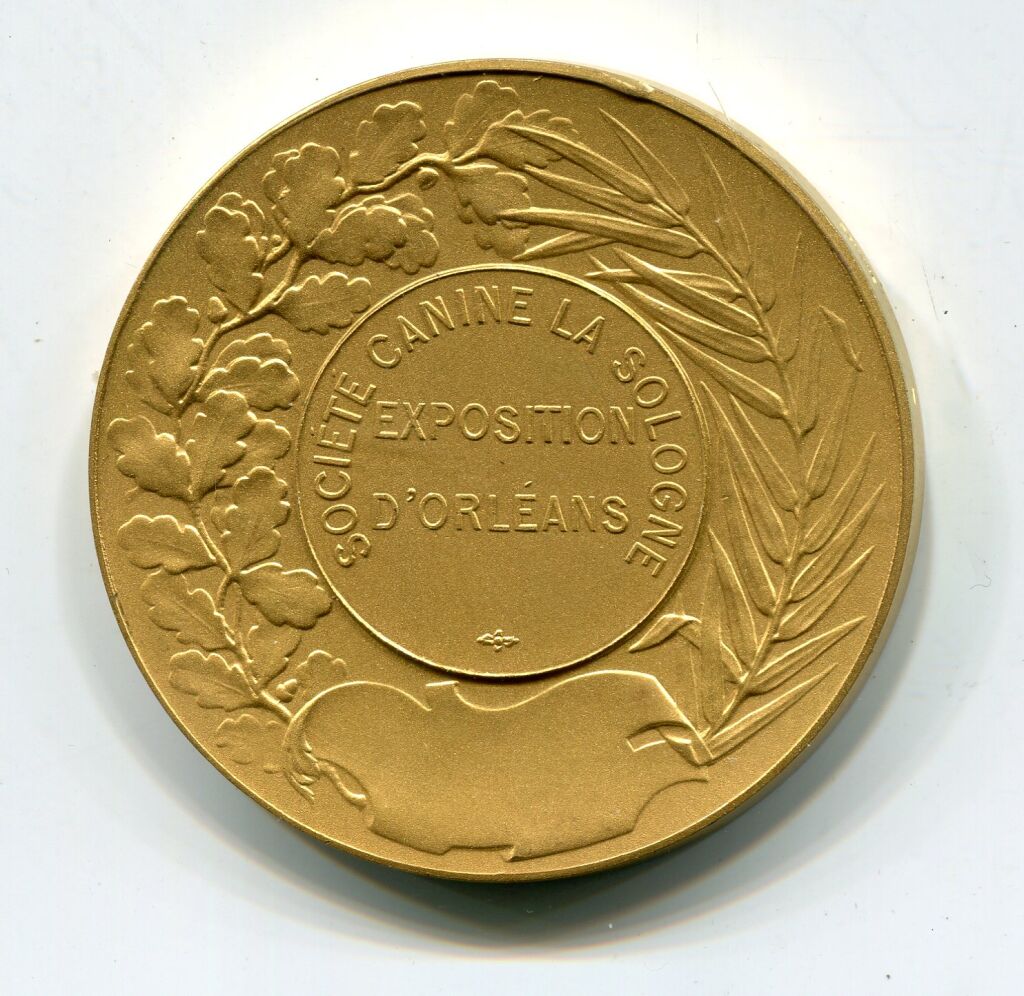 " SOCIETE CANINE LA SOLOGNE - EXPOSITION D'ORLEANS " - Médaille classe OR en bronze doré - 50 mm - 56,3 grammes - TTB