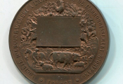 " SOCIETE D'ENCOURAGEMENT à L'AGRICULTURE de L'ARRONDISSEMENT D'ORLEANS / LOIRET " - République Française, tête coiffée du bonnet phrygien, laurée de laurier et d'épi de blé, profil à gauche - Revers : en centre cartouche pour attribution surmonté d'un coq et feuillage ; au-dessous ferme avec scène de labour, vache, mouton, cochon. Poinçon argent sur la tranche - grand module 50 mm en BRONZE patiné rouge.