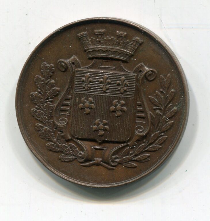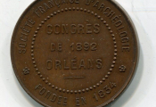 Blason d'Orléans couronné entre 2 palmes de chêne et d'olivier - texte au revers. Jeton commémoratif, mention cuivre et poinçon corne sur la tranche.