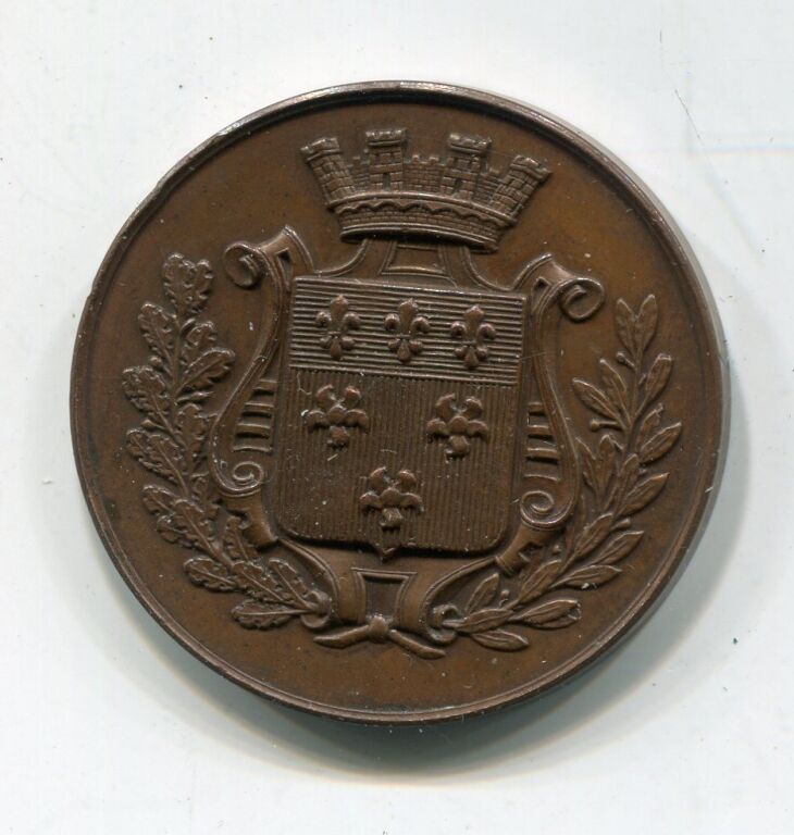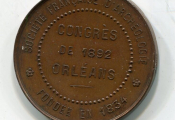 Blason d'Orléans couronné entre 2 palmes de chêne et d'olivier - texte au revers. Jeton commémoratif, mention cuivre et poinçon corne sur la tranche.