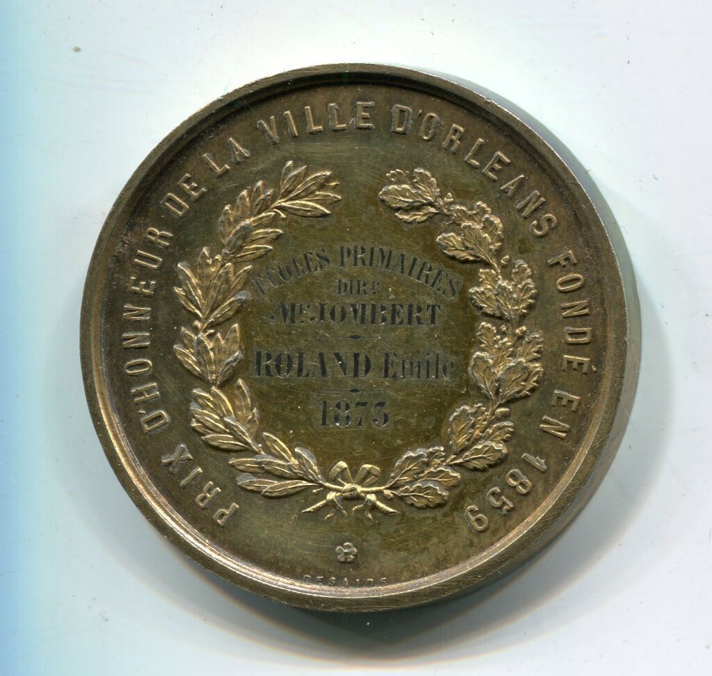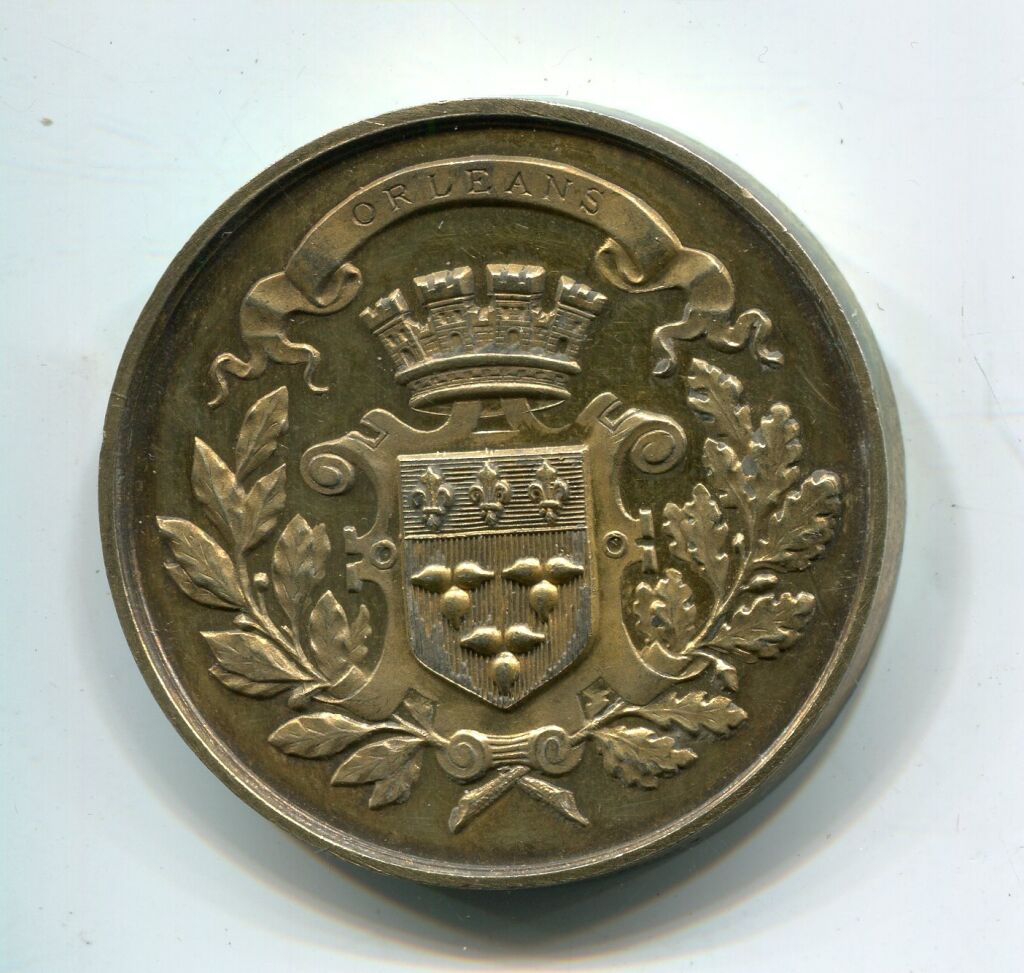 VERMEIL - Enseignement public - " PRIX D'HONNEUR de la VILLE D'ORLEANS, Fondé en 1859 " - Blason d'orléans couronné entouré de 2 rameaux de chêne & olivier.