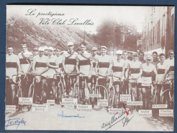 En tête l'équipe avec nom des coureurs 1927 du Vélo Club au départ de la course Paris à Rouen. Au dos son l'impressionnant palmarès entre 1891 et 1947 - Cette carte comporte la SIGNATURE AUTO
