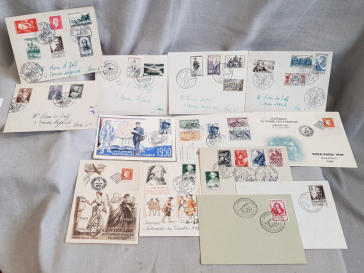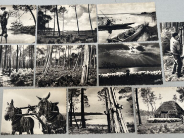 Belle collection de cartes glacées immédiate après guerre & années 50, vues générales, vues aériennes, illustrateurs, fantaisies, amour courtois, personnages locaux, grands photographes d'actualités