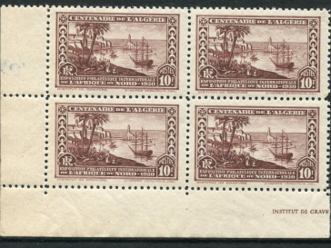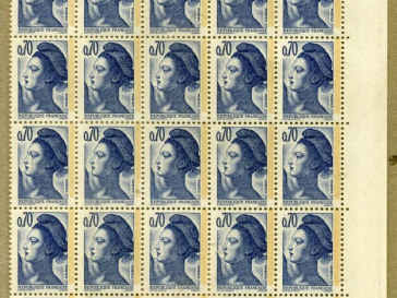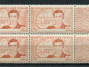 Bloc de 25 timbres AVEC RARE VARIETE (case 16) TIMBRE NON SURCHARGE - NEUFS **