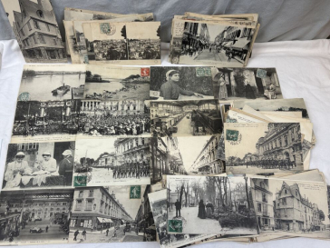 Collection de 37 cartes postales différentes, principalement cartes anciennes.