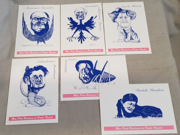 HOMMAGE à Gustave Arthur DASSONVILLE et au " BRULOT ( * ) - collection de six cartes postales caricatures "portraits" par l'illustratrice " NATY " Debrézé -