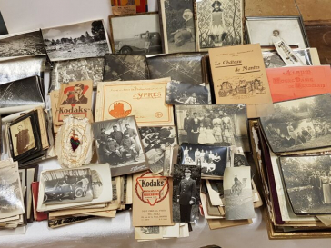GROS VRAC A TRIER VIEUX PAPIERS : photos anciennes, buvards publicitaires, vieilles actions, almanach du facteur 1939 / 73, publicités diverses, almanachs et magazines, cartes postales, images Chocolat Poulain, images pieuses, affiches, menus, gravur