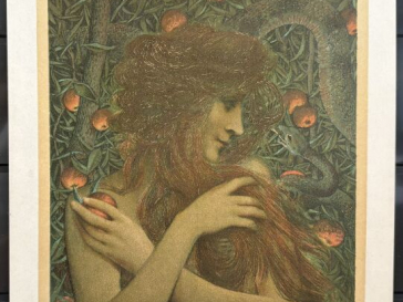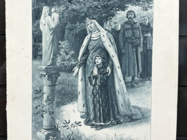 Très belle illustration lithographie couleur, tête de jeune femme avec diadème cercle d'étoile et longues mèches de cheveux.