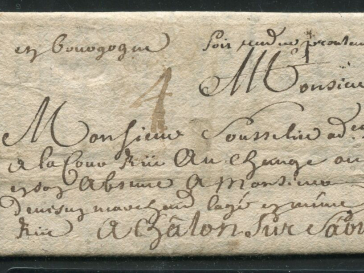 FRANCE - HISTOIRE POSTALE PRECURSEURE du 17e siècle - RARE PLI au départ de PARIS, daté du 18 octobre 1692, pour CHALON sur SAONE "en Bourgogne " - " soit rendue promptement " à Monsieur Sousselier administrateur à la Cour rue au change ou en cas d