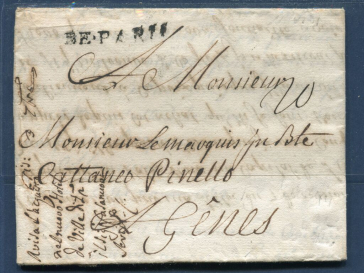 Beau pli en PORT DU pour GENES du 21 août 1759, 4 x 43 mm, Lenain n° 3.