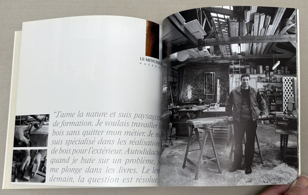 - L'Ébéniste à Trappes J. Claude MABIRE - l' Imprimeur à GROSROUVRE Jean Paul VIBERT - le Taxidermiste à Trappes Régis SOYER - le Sellier-Harnacheur au Perray en Yvelines, Alain LE NOUVEL - Le Sabotier-Sculpteur des Mureaux Sauveur DICHIARA - la Miniaturiste à Cressely Odile PELTON - Le Peintre-Restaurateur du Mesnil St Denis William LANGELAAN - Le Couvreur à Mantes la Jolie Jacques DEROLIN, Les Serruriers-Métalliers à Versailles Gérard & Jacky BUREL - Le Menuisier à Gazeran, Le Tapissier à Versailles Jean Claude POTIER, le Restaurateur de Pierres à Versailles Hugues de BAZELAIRE, le Maréchal Ferrand à St Léger en Yvelines Carl HAENEL, le Staffeur à Bonnières Pierre DURAND, le Peintre Verrier au Vésinet Emmanuel CHAUCHE, le Pâtissier à Versailles Joel FICARA. -