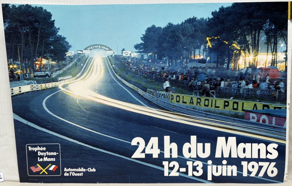 AFFICHE 24 HEURES DU MANS 12 & 13 JUIN 1976 - TROPHEE DAYTONA LA MANS - le circuit la nuit - Illustration / photo Moreillon & Schweitzer - impression offset polychromie. - 38 x 57,5 cm