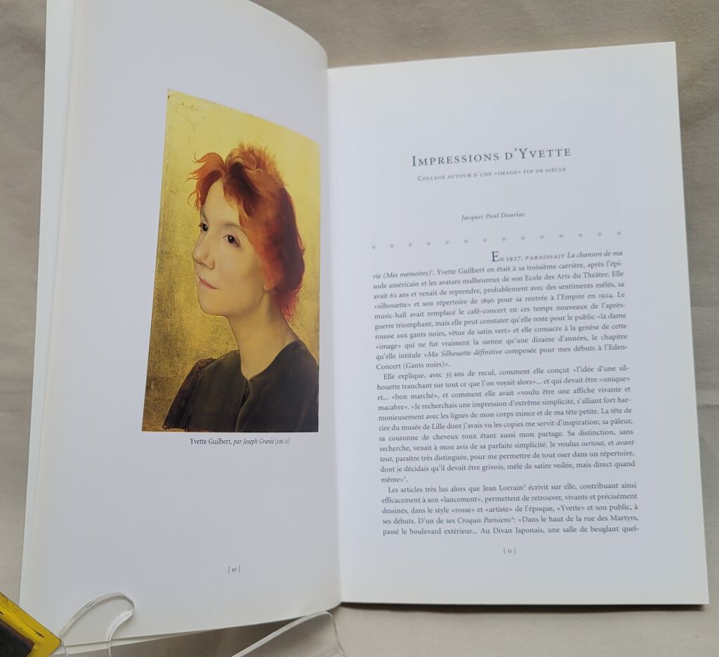 Ce livre présenteet rend hommage à Yvette Guilbert, illustre vedette de Café Concert du début du sièce, à l'occasion du cinquantenaire de sa mort. Aussi célèbre en son temps que Sarah Bernhardt, elle incarne le répertoire montmartos de la Belle Epoque. Première artiste à gérer son image, elle inspira de nombreux graphistes : Cheret, Cappielo, Bac, Léandre, Steinlein et surtout Toulouse-Lautrec. L'exposition et le livre rend compte de tous les aspects de sa carrière en France et au Etats-Unis