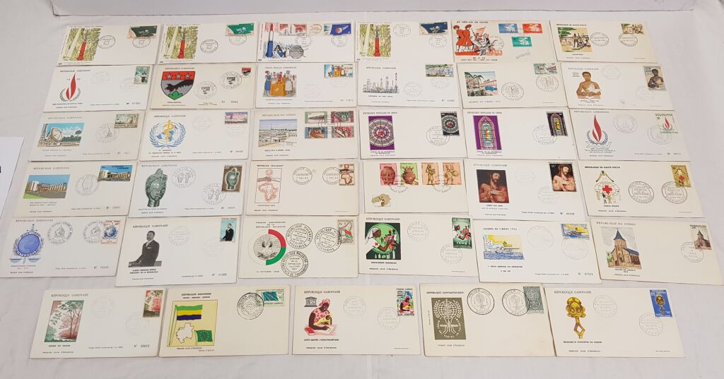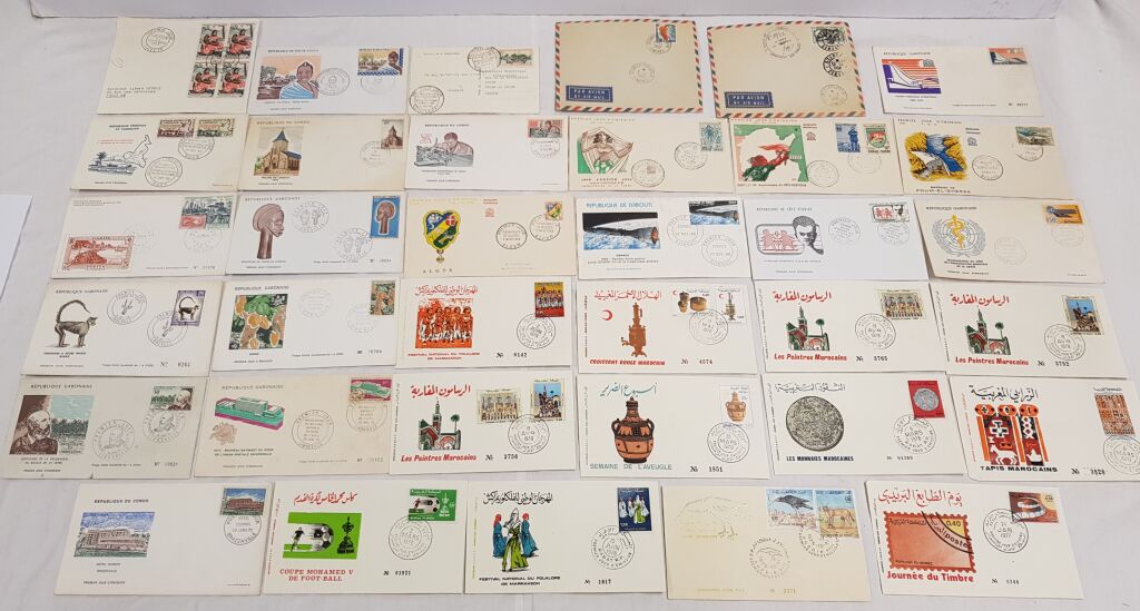 ANCIENNES COLONIES FRANCAISES - Cent (100) ENVELOPPES PREMIER JOUR illustrées années 60 / 80 - différentes, illustrées - Très forte valeur des seuls timbres en détaché.