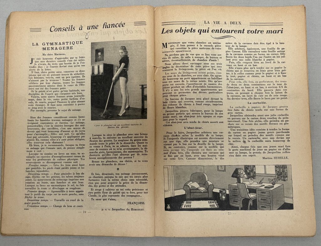 Sommaire : femmes vous êtes une force, conseils à une fiancée, coupe et assemblage de votre manteau, la chambre nuptiale, voici bébé, la gymnastique ménagère, l'enclave de madame au domicile de monsieur, pour lui plaire, peut on accoucher sans douleur ?,...