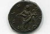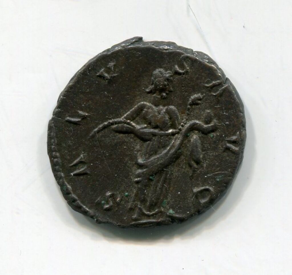 Buste de Victorin, à droite, radié, cuirassé. - Revers : SALVS AVG, la santé de l'Auguste - La santé debout à droite nourrissant un serpent, une patère entre ses doigts.