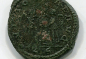 IMP CMCASS LAT POSTVMVS PF AVG, l'empereur césar Marcus Cassius Latinus Postumus, pieux, heureux, auguste ; son buste radié, cuirassé, à droite.