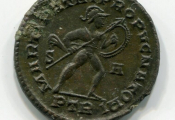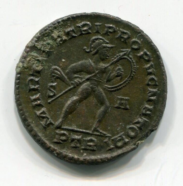 IMP CONSTANTINVS SPP AVG (l'empereur Constantin pieux et bienheureux auguste), buste à droite, lauré & cuirassé - Revers : MARTI PATRI PROPVGNATORI / S A en centre / PTR à l'exergue (atelier d' Augusta Trevenorum, Trèves en Allemagne). " à Mars défenseur de la Patrie ", Mars avançant à droite, casqué, nu, chlamyde sur les épaules, tenant lance et bouclier. - 25 mm - 6,61 grammes - TTB