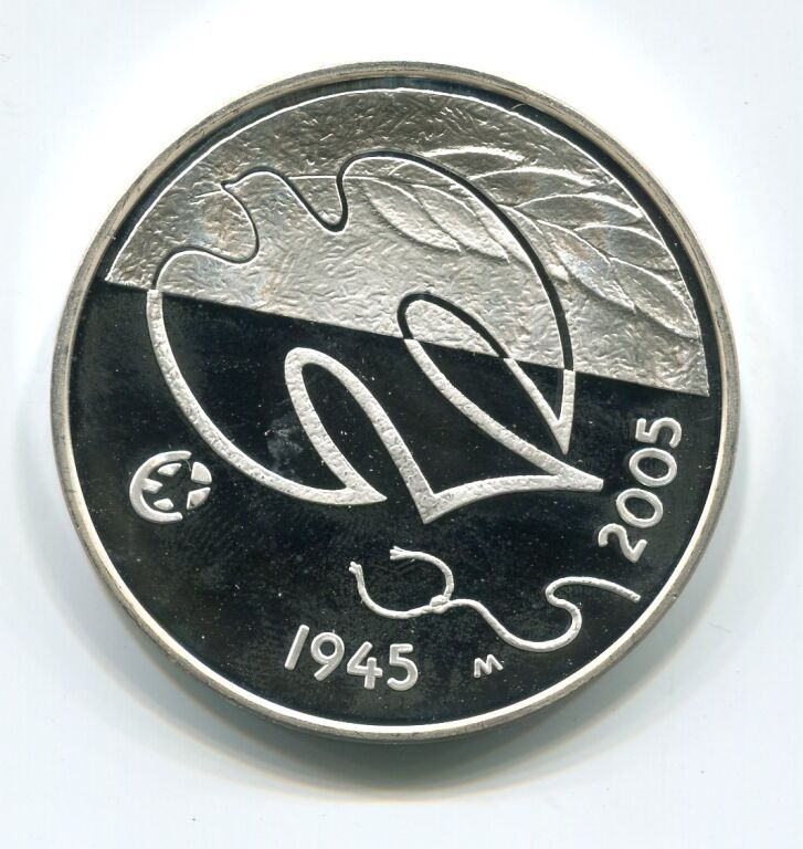 ARGENT 925 millimes - FINLANDE 2005 - DIX euros commémorative " 60 ans de la Paix et de la Liberté en Europe " - 25,5 grammes - 38,6 mm - Colombe de la Paix - fleur de coin belle épreuve sous capsule, tirage 55 000 monnaies.