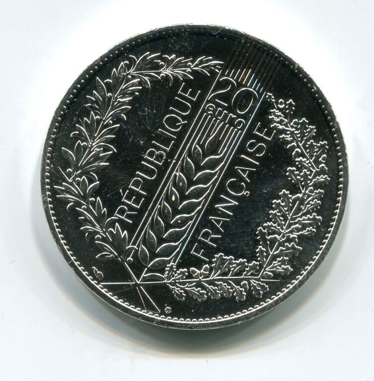 Feuille de chêne 1ère monnaie de la nouvelle série "nature de France" de la Monnaie de Paris. Feuille de chêne synonyme de force et de longévité, symbole de Liberté et de joie pour la République. - 33 mm - argent 900 millièmes - 18,10 grammes - tirage 75 000 monnaies.