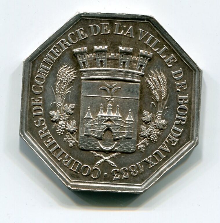 ARGENT - Jeton des COURTIERS de COMMERCE de la VILLE de BORDEAUX 1833.