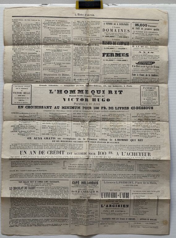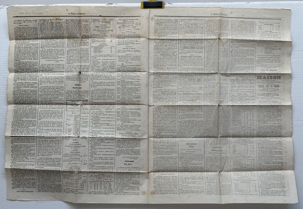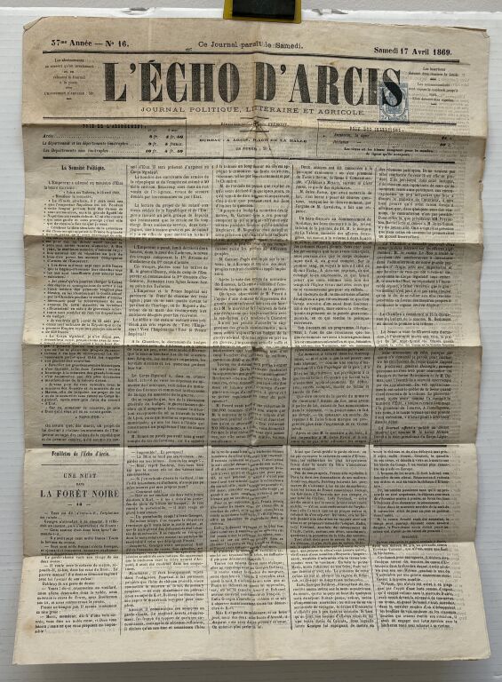 sur journal " politique, littéraire et agricole " L' ECHO D' ARCIS ", numéro 16 su samedi 17 avril 1869.