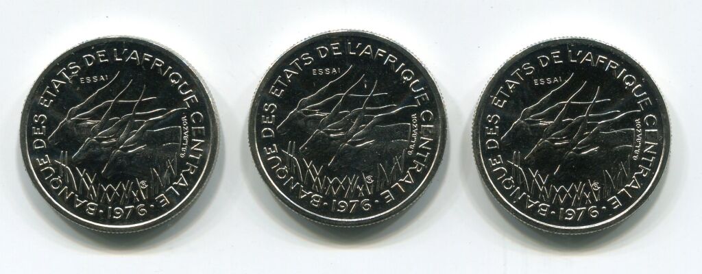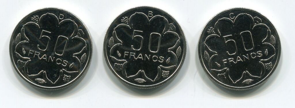 - Monnaie avec lettre B au revers (Centrafricaine) + lettre C (Congo) + D (Gabon).