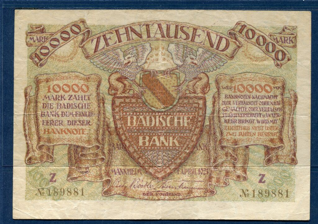 BILLET BANQUE de BAVIERE, émission de Mannheim du 1er avril 1923.