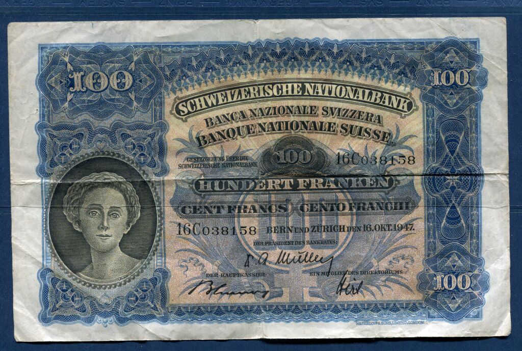 BILLET - SUISSE - 100 francs, émission du 16 octobre 1947.