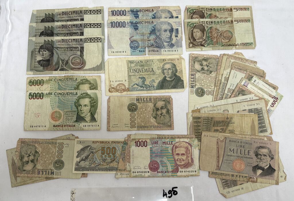 BILLETS ITALIE, années 1960 à 1980 environ - Une Cinquantaine de billets de 500 à dix mille lires pour un total de 116 500 lires ( cent seize mille cinq cents ).
