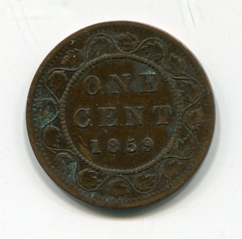 CANADA - ONE CENT de cuivre 1859 "VICTORIA DEI GRATIA REGiNA" - 4,45 gr, la première monnaie canadienne - buste de la reine profil à gauche. - TTB
