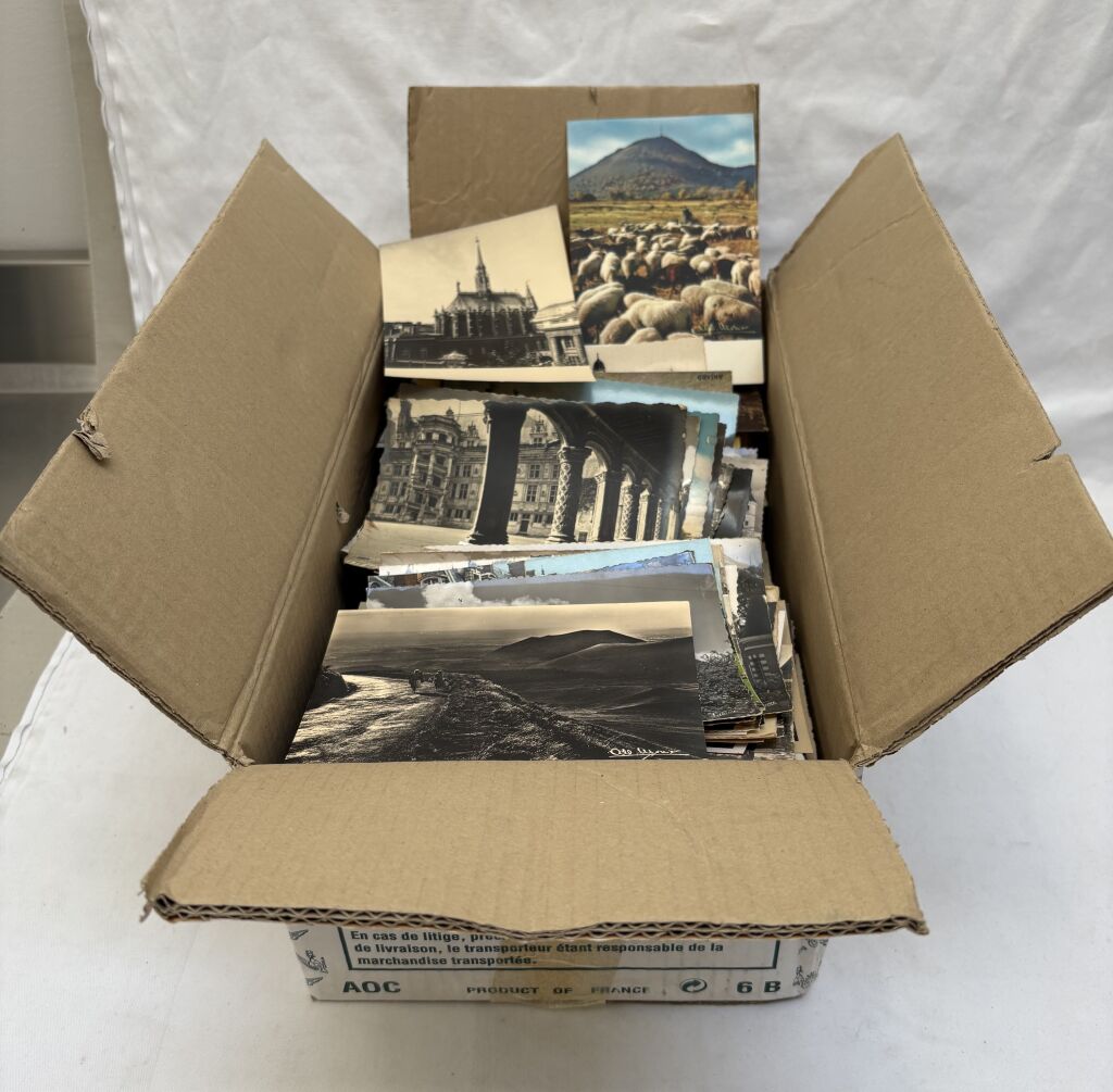 Belle collection de cartes glacées immédiate après guerre & années 50, vues générales, vues aériennes, illustrateurs, fantaisies, amour courtois, personnages locaux, grands photographes d'actualités et scènes locales etc... - plus de 900 (neuf cents) documents.