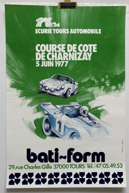 5 juin 1977 - " ECURIE TOURS-AUTO " Réalisation Visons ed, dessin de deux voitures en course. - 60 x 40 cm.