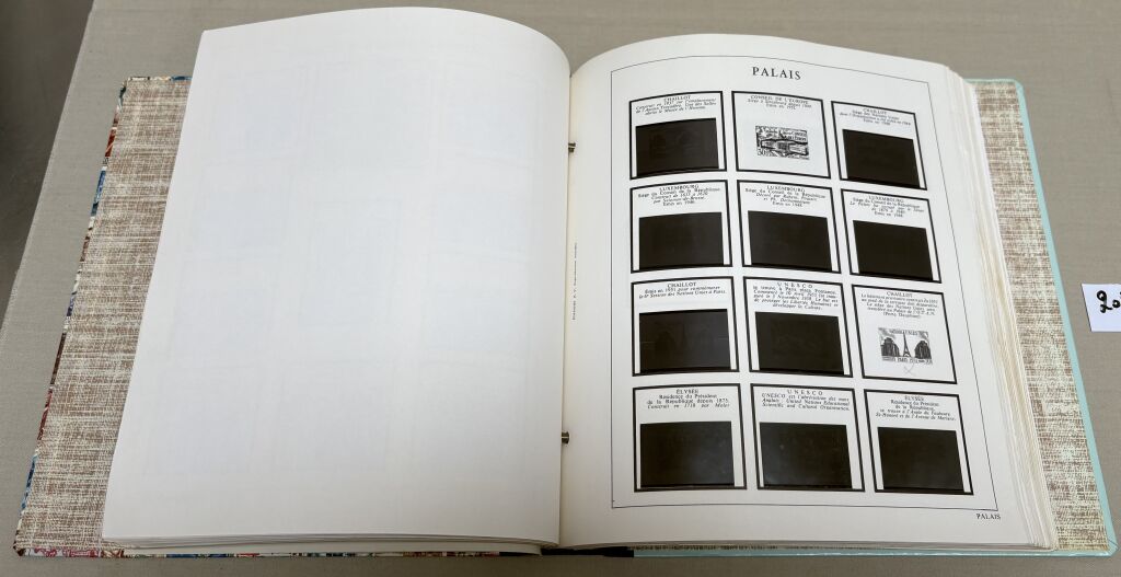 COLLECTION de TIMBRES de FRANCE - ALBUM ENCYCLOPEDIQUE et PEDAGOGIQUE des éditions AV, feuilles pré-imprimées avec texte historique et explicatif au dessus de chaque timbre ; le seul album reconnu par l'éducation nationale comme support éducatif.